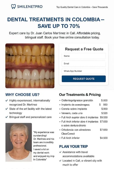 “Viaja a Costa Rica, Mexico y Colombia para tus implantes.” Implantes el mismo dia